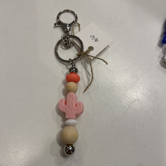 Cactus silicone beaded yellow/wood keychain