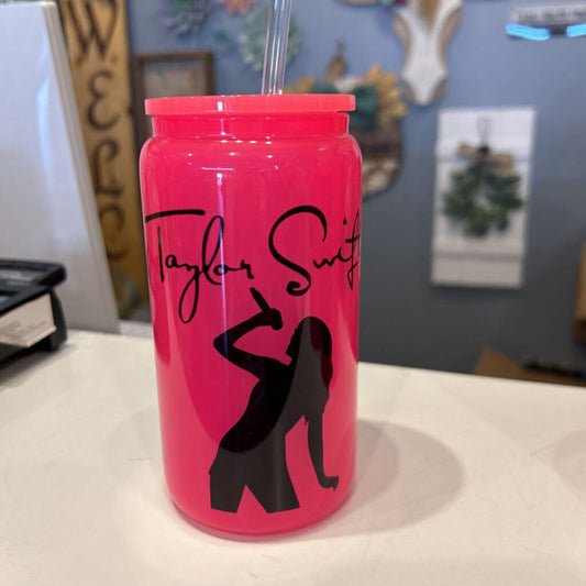 Tay Swift Era Singing Pink 16oz Beer Can Glass