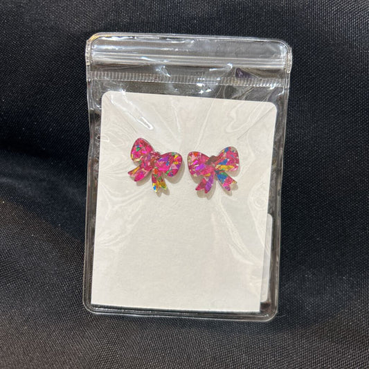 Blue Purple Heart Glitter Inlay Circle Earrings