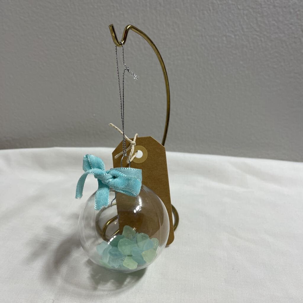 #76 Ornament-Sm Teal Velvet Ribbon, Teal Glass