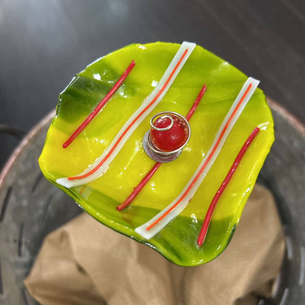 Glass & painted copper stemed stake; Handmade by a Local Vendor