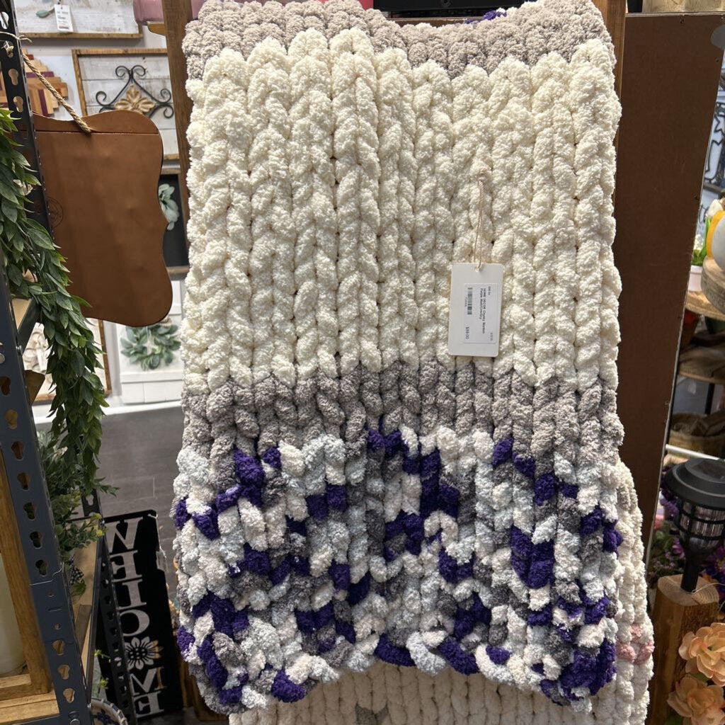 Chunky Blanket-Purple Multi/Crm/Gry