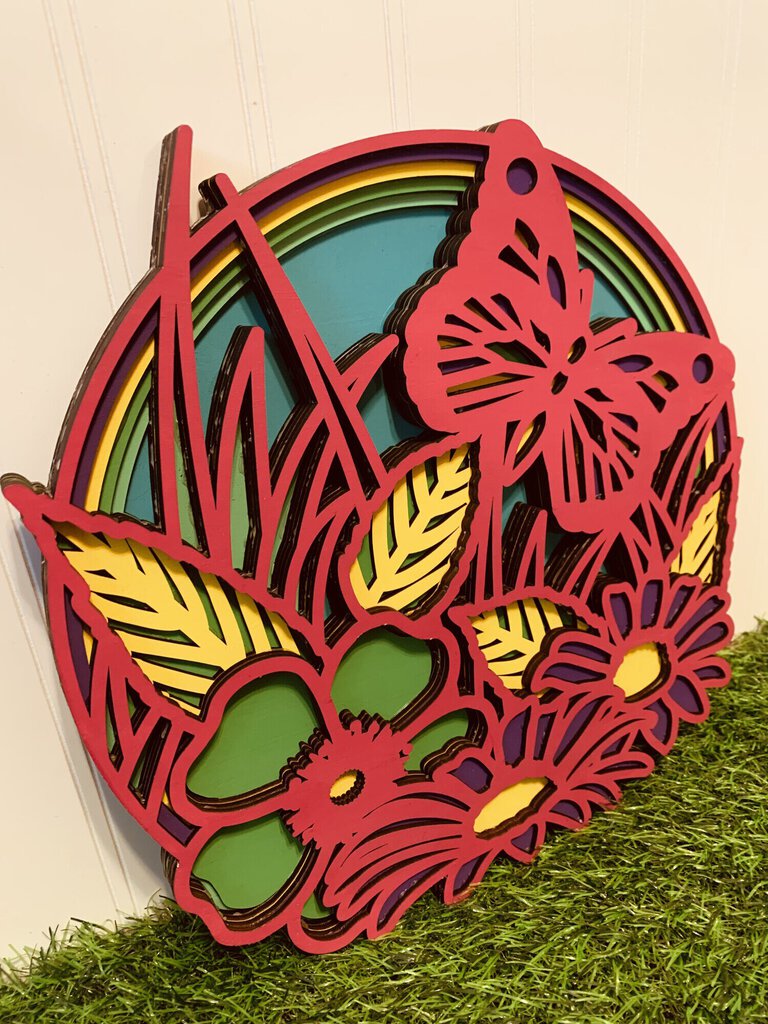6-layer wooden flower and butterfly mandala. Colors can be customized!