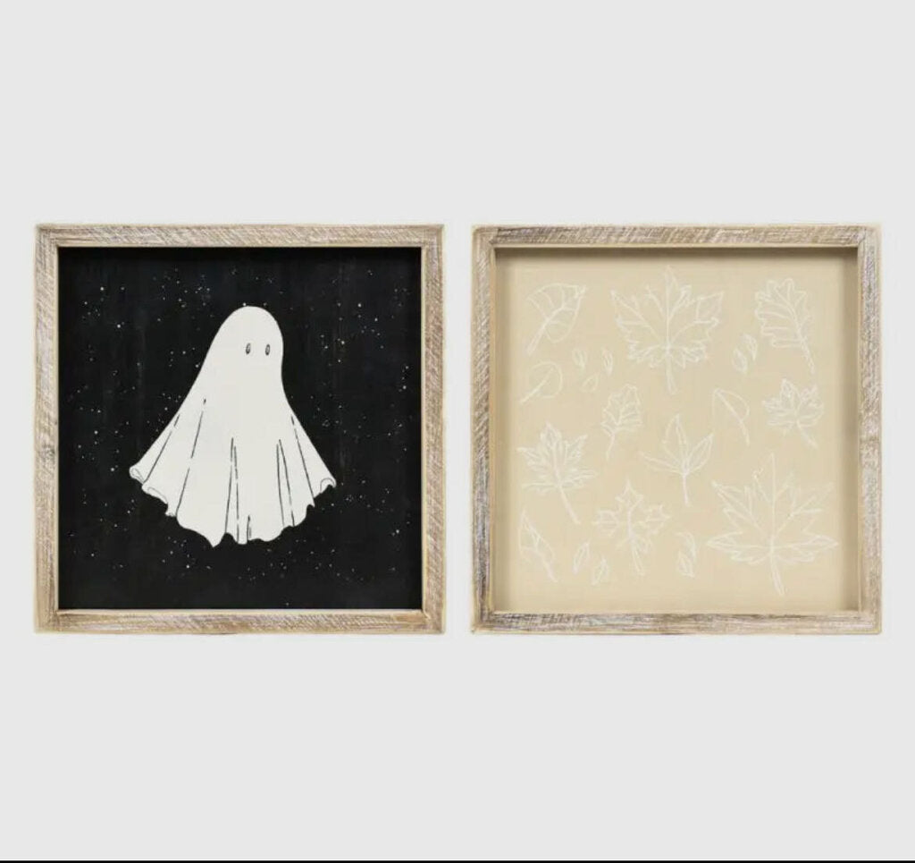 Wood Sign Ghost/Leaf 10x10